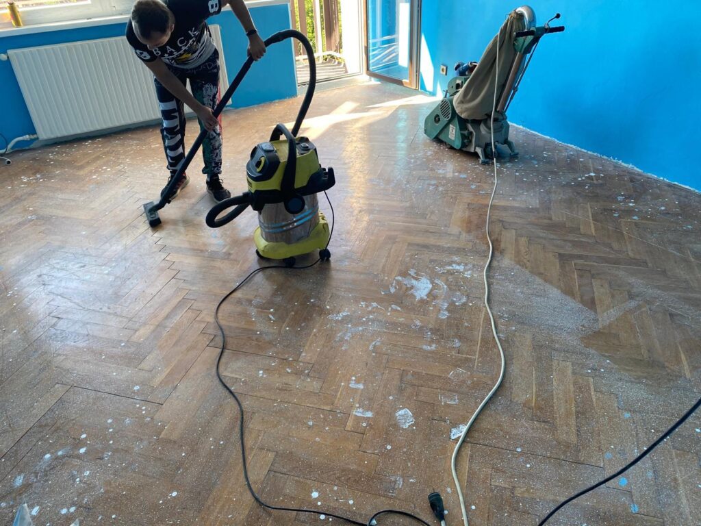 Projekt spočíval v kompletní renovaci dřevěných parket ve stylu rybího vzoru. Původní podlaha po letech užívání ztratila lesk a vykazovala známky opotřebení, které znehodnocovaly celkový vzhled interiéru.